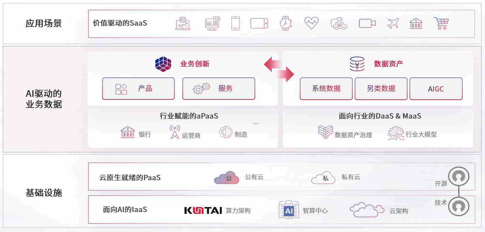数字时代,,围绕企业数字化转型的关键要素,,,,NG大舞台数码开创性的提出数云融合战略和技术体系框架,,,着力在云原生、、、数字原生、、AI原生和信创产业上架构产品和服务能力,,,,为处在不同数字化转型阶段的快消零售、、汽车、、、、金融、、、医疗、、、、政企、、、教育、、、运营商等行业客户提供泛在的敏捷IT能力和融合的数据驱动能力,,,构建跨界融合创新的数字业务场景和新业务模式,,助力企业级客户建立面向未来的核心能力和竞争优势,,,,全面推动社会的数字化、、智能化转型升级。。。。